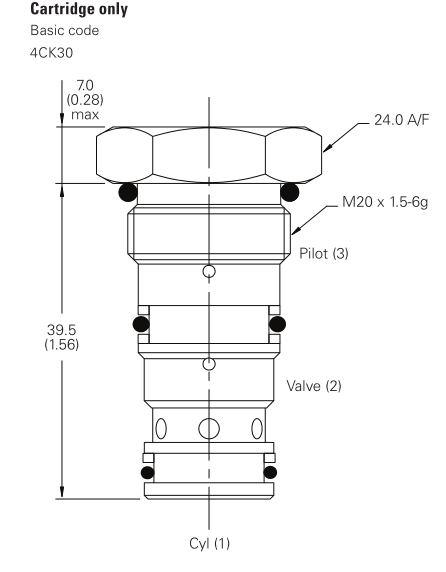 actuator, in position.The 4CK30 is a small cartridge valve and is ideally suited for fitting directly into a cylinder, giving economy of installation, direct control of cylinder movement and ease of servicing.